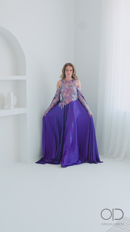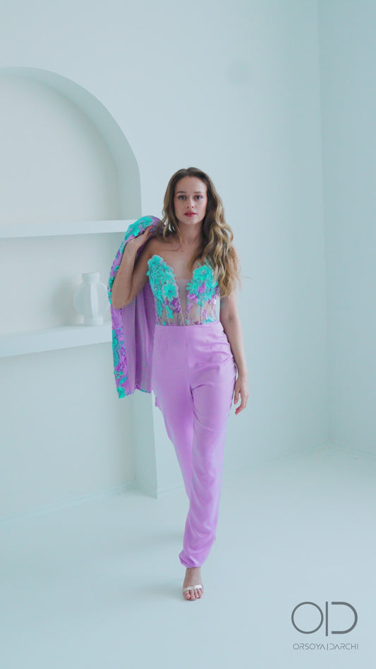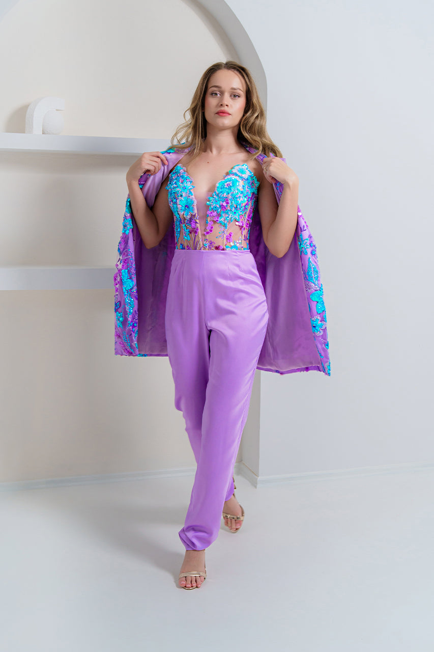 Lilac Embroidered Mesh Jumpsuit with Matching Sequin Blazer